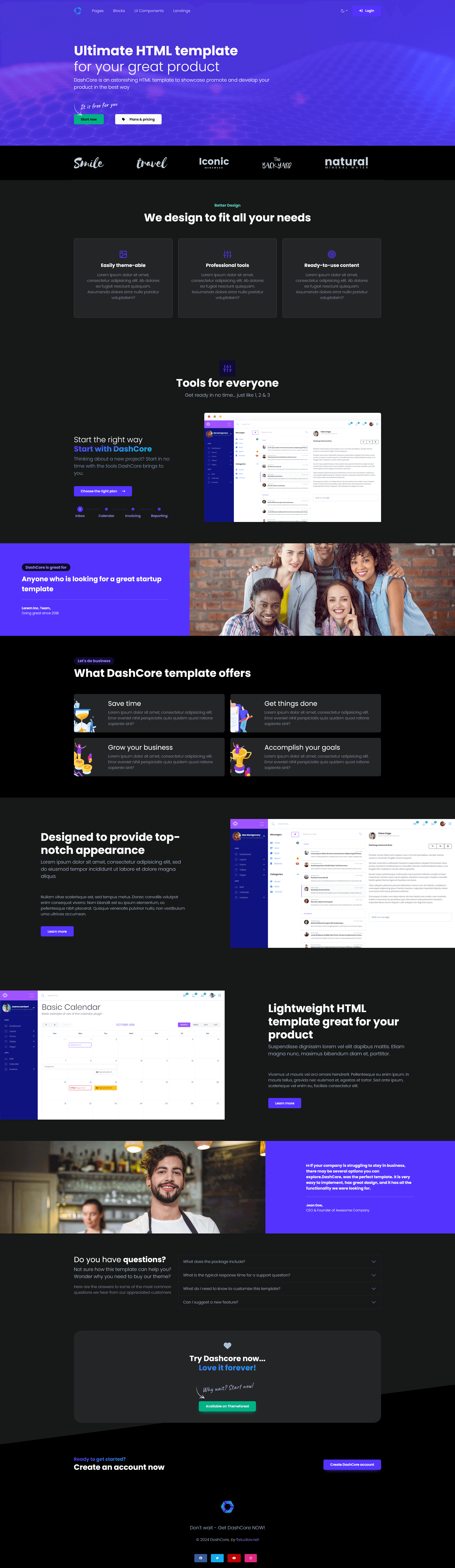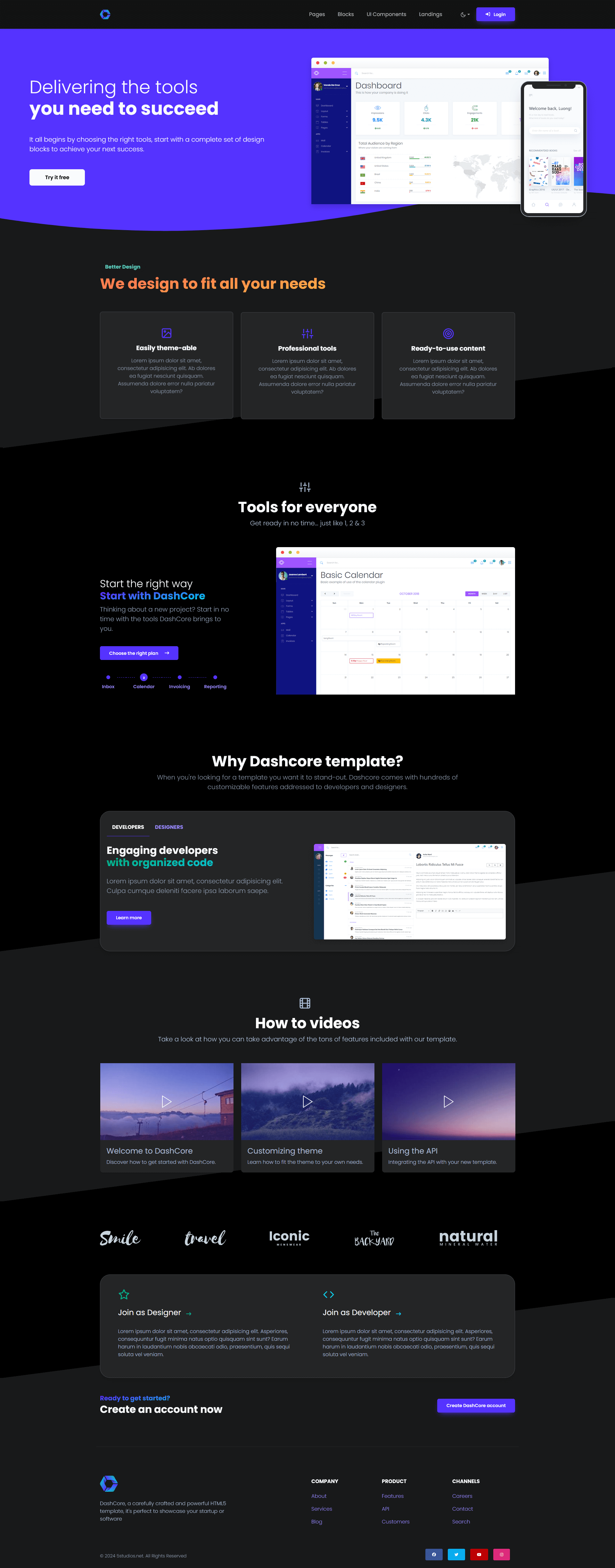 DashCore is an all included HTML template, it's packed with multiple demos and tech stacks to help you get started with your project.