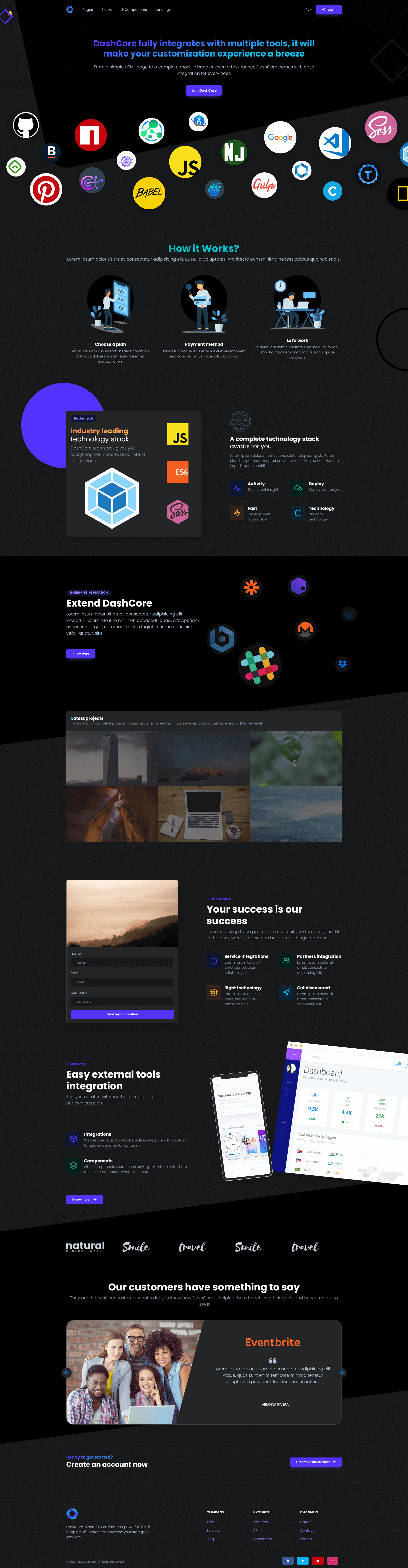 DashCore is a Bootstrap 5 HTML template. Designed to help you promote your solution in an easy and beautiful way.